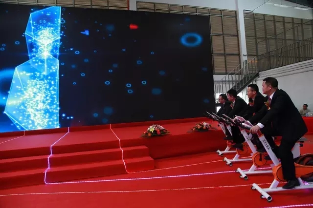 信利高層一起奮力騎動(dòng)單車亮點(diǎn)LED線,匯聚能量